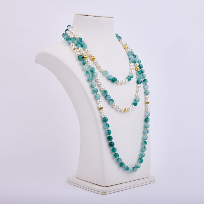 We love how green contrasts with pearls in these simple and delicate necklace