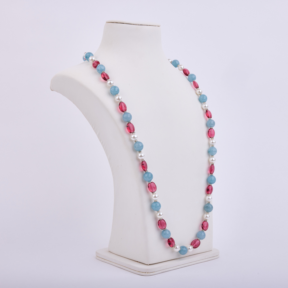 Complemented by pearls, this necklace features a vibrant pop of colour